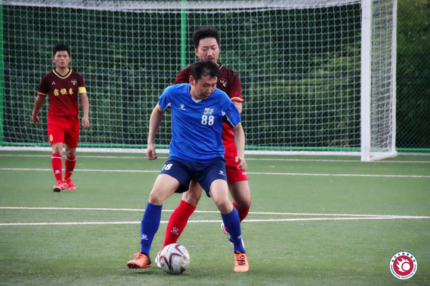 金东方教职工足球队由集团各校区13位足球爱好教师组成,是一支比较成熟的业余足球队。在主教练余思源老师的带领下通力协作,坚持“一周一练一赛”的训练模式,球队组织有力,训练到位,在比赛中每位队员分工明确、配合紧密。