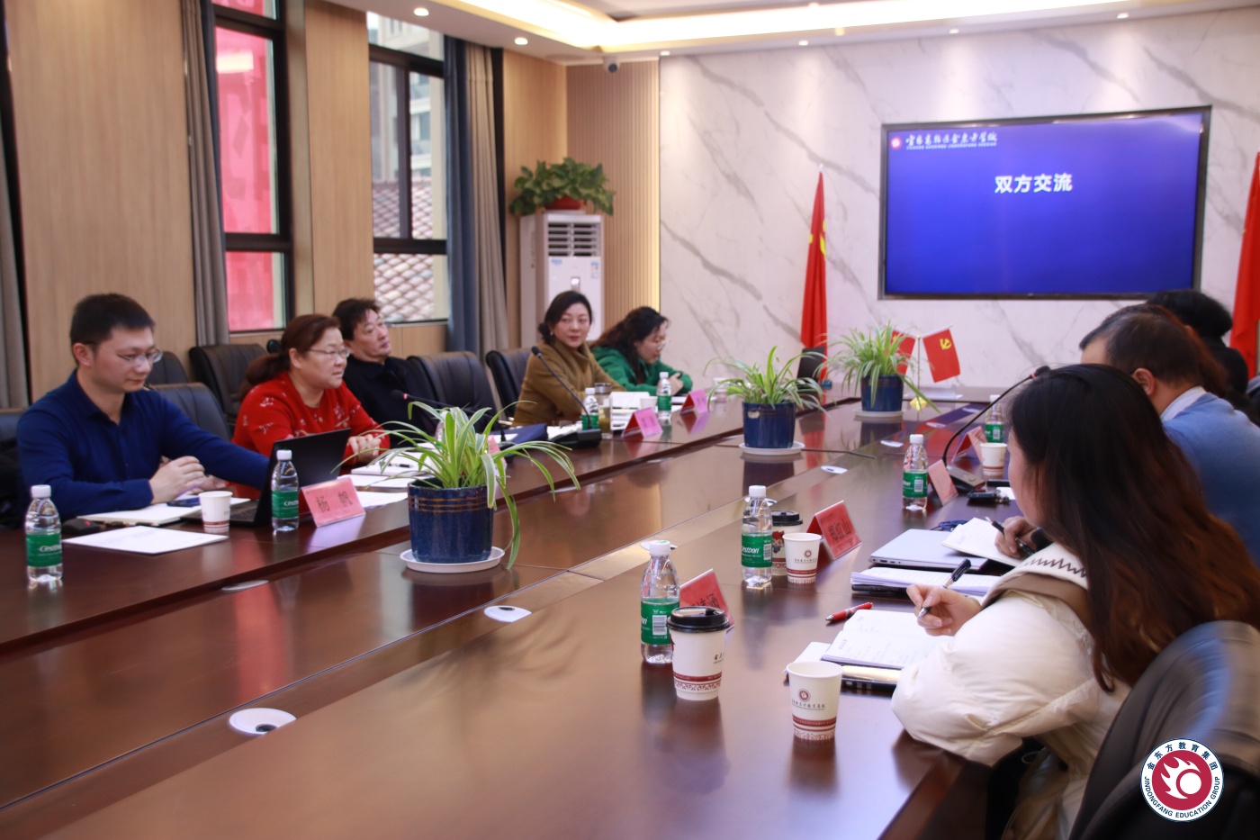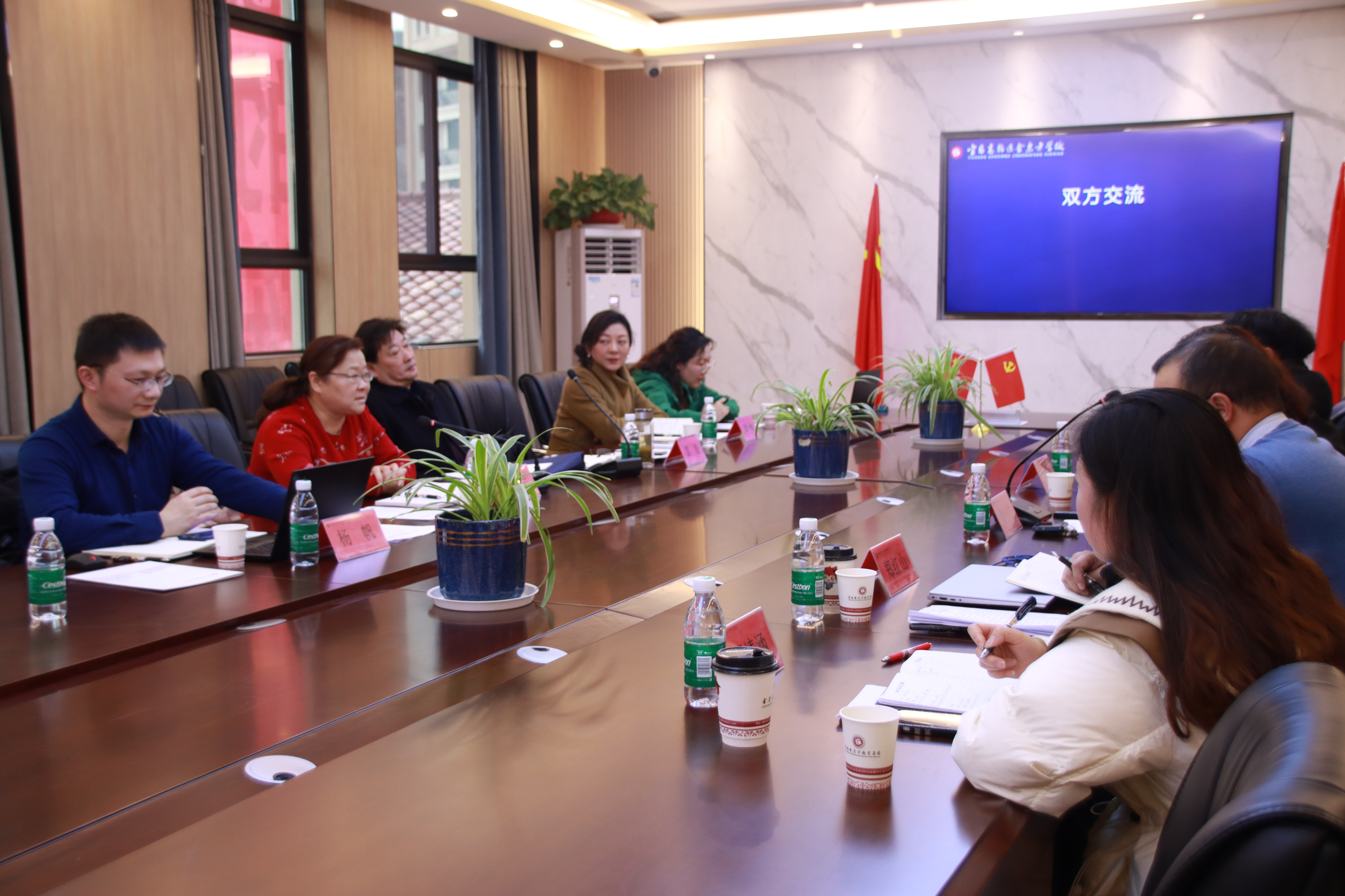随后的座谈会上,游校长和郑校长分别介绍了学校的办学特色、课程开设情况,双方也就学校管理、教育教学等相关问题进行了深入探讨。