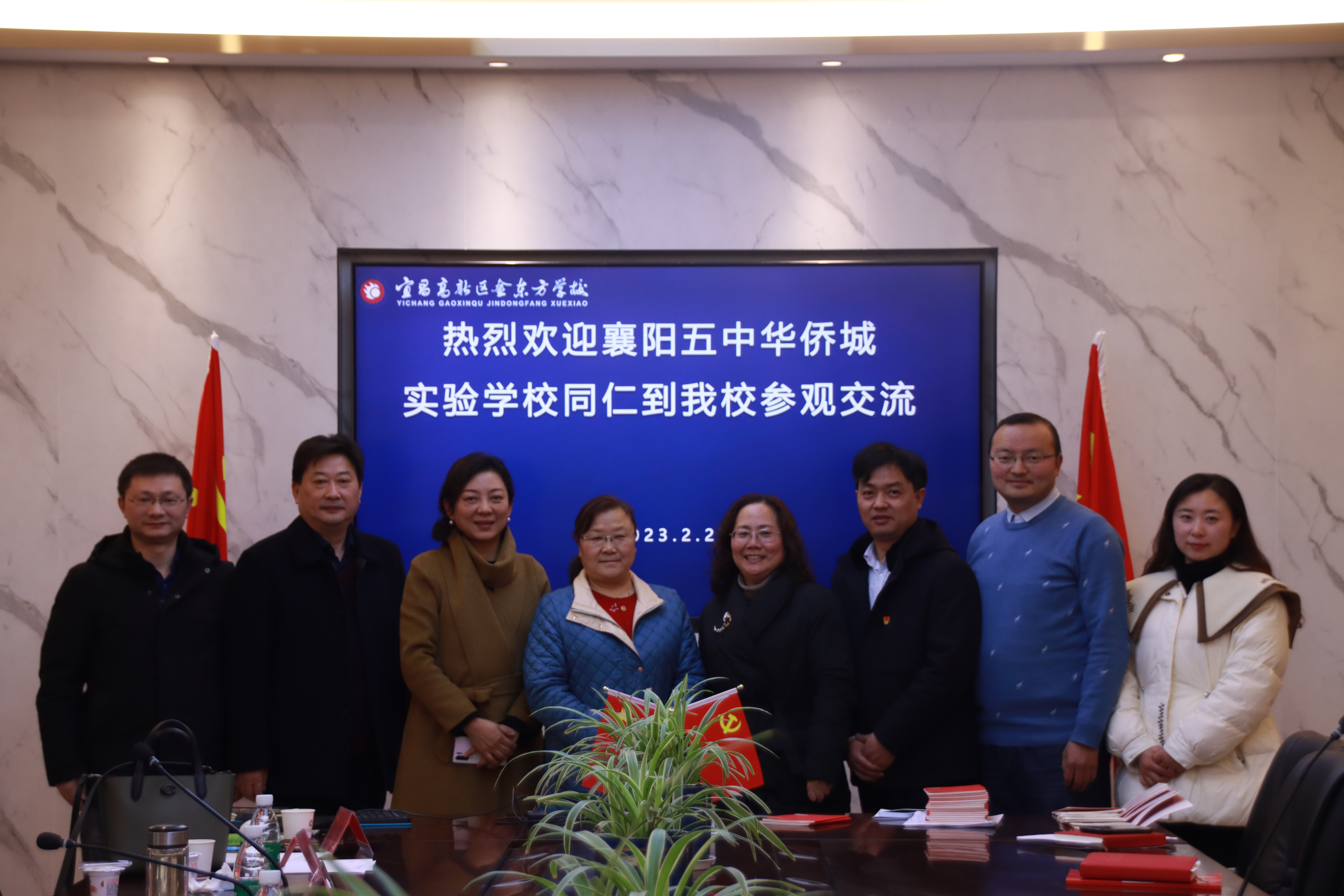 2月23日上午,襄阳五中华侨城实验学校校长张德兰、总督学雷俊一行6人莅临高新区金东方学校参观交流。
